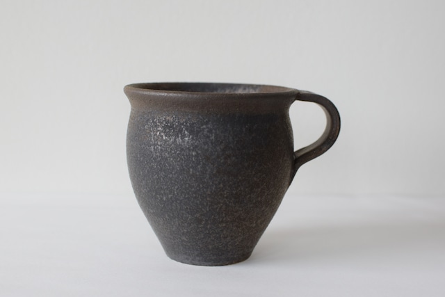 オリジナルの釉薬により発色された金色。 形や高台にこだわったマグカップです。 とっての形変えました 手仕事のためひとつひとつ発色や形が異なります。 高:約8cm ×横:約8cm
